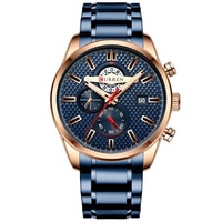 ساعة كرونوغراف فاخرة للرجال من كارين, ساعة كرونوغراف فاخرة للرجال مقاومة للمياه مصنوعة من الستانليس ستيل باللون الذهبي مزودة بتقويم رياضي